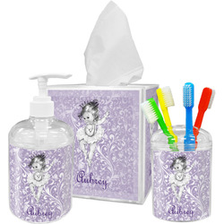 Your bathroom accessories set includes a tissue box cover, a toothbrush holder, and an acrylic soap dispenser. When purchased together, you can make a coordinating set, and save money, as the set is cheaper than purchasing each item individually.
