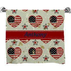 These customized bath towels are slightly larger than your standard towel and are the ideal size for wrapping around your body. They measure approximately 60" x 30". Your customization is displayed across the entire front face of the towel, while the back is white.