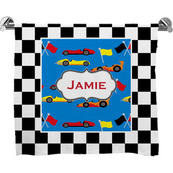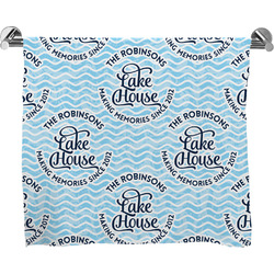 These customized bath towels are slightly larger than your standard towel and are the ideal size for wrapping around your body. They measure approximately 60" x 30". Your customization is displayed across the entire front face of the towel, while the back is white.