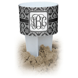 This cup holder has a large stake at its bottom that anchors it to the sand or ground below, while the cup holder rests above the stake. The entire drink holder is made of durable plastic and displays your customization around the cup holder portion. We sell these personalized beach spikers in two different colors: black and white.