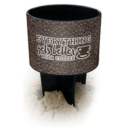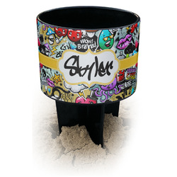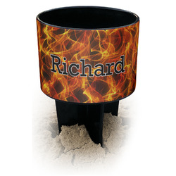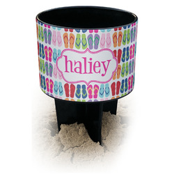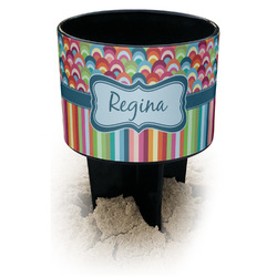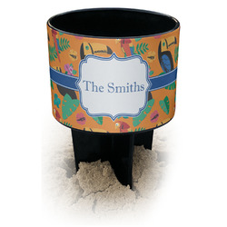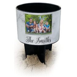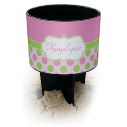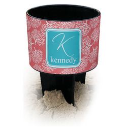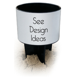 This cup holder has a large stake at its bottom that anchors it to the sand or ground below, while the cup holder rests above the stake. The entire drink holder is made of durable plastic and displays your customization around the cup holder portion. We sell these personalized beach spikers in two different colors: black and white.