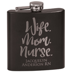 You'll always look classy when drinking when you use our black flask! These personalized flasks have a sleek, black look that will look lovely alongside your other bar-ware and accessories! After you've customized one for yourself, craft one for a friend or loved one!