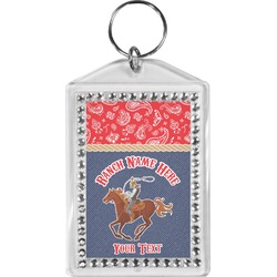 Our personalized keychains have a bold, rectangular shape, outlined by a series of shimmering rhinestones. A metal, split keyring is included with your purchase, and an additional metal hoop allows for attachment of the keychain to the split ring. This unique keychain measures at about 3.75 by 2.5 inches. We print your customized design(s) across both the back and front of this keychain.