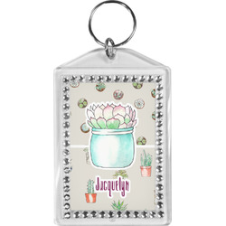 Our personalized keychains have a bold, rectangular shape, outlined by a series of shimmering rhinestones. A metal, split keyring is included with your purchase, and an additional metal hoop allows for attachment of the keychain to the split ring. This unique keychain measures at about 3.75 by 2.5 inches. We print your customized design(s) across both the back and front of this keychain.