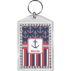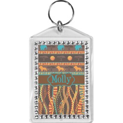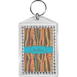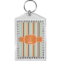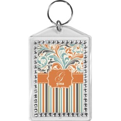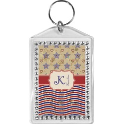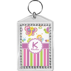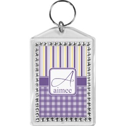 Our personalized keychains have a bold, rectangular shape, outlined by a series of shimmering rhinestones. A metal, split keyring is included with your purchase, and an additional metal hoop allows for attachment of the keychain to the split ring. This unique keychain measures at about 3.75 by 2.5 inches. We print your customized design(s) across both the back and front of this keychain.