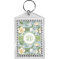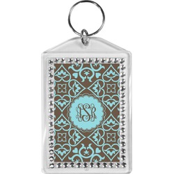 Our personalized keychains have a bold, rectangular shape, outlined by a series of shimmering rhinestones. A metal, split keyring is included with your purchase, and an additional metal hoop allows for attachment of the keychain to the split ring. This unique keychain measures at about 3.75 by 2.5 inches. We print your customized design(s) across both the back and front of this keychain.
