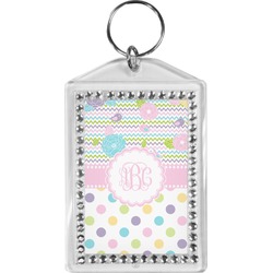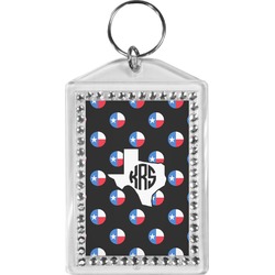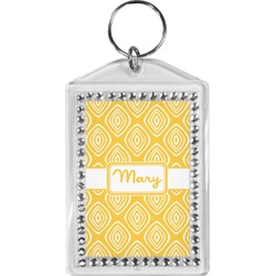 Our personalized keychains have a bold, rectangular shape, outlined by a series of shimmering rhinestones. A metal, split keyring is included with your purchase, and an additional metal hoop allows for attachment of the keychain to the split ring. This unique keychain measures at about 3.75 by 2.5 inches. We print your customized design(s) across both the back and front of this keychain.