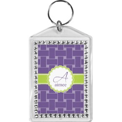 Our personalized keychains have a bold, rectangular shape, outlined by a series of shimmering rhinestones. A metal, split keyring is included with your purchase, and an additional metal hoop allows for attachment of the keychain to the split ring. This unique keychain measures at about 3.75 by 2.5 inches. We print your customized design(s) across both the back and front of this keychain.