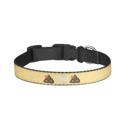 We offer these custom dog collars in two sizes: small and large. Our small dog collar, suitable for Pugs, Corgis, Beagles, and many others, is 10" to 16" long and 0.75" wide. Our large size fits Collies, Labradors, and Standard Poodles and other larger dogs (to name a few), and is 15" to 22" long, and 1" wide.