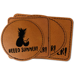 Our leather patches come in 4 different shapes - Square (3" x 3"), Round (3" x 3"), Oval (3.5" x 2.5"), Rectangle (3.5" x 2.5") and a beautiful rich brown rawhide or cognac color.
