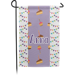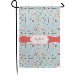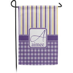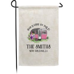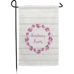 These custom garden flags are made of a durable, double-ply, polyester weave, allowing them to withstand the elements year round. The small flags measure at approximately 12 by 18 inches. The large flags measure out to 28 by 37 inches. You can order these decorative flags with your customization printed on the front only, or the front and back.