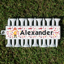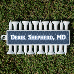 With 12 tees on a lightweight, portable key chain, it almost ensures a great 18 holes. Our tees are made of white plastic and are a little over 2". Design the front and the back of the golf tee holder. Pick from over a hundred designs, colors, and personalization styles! The set even comes with three removable ball markers as well!