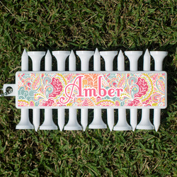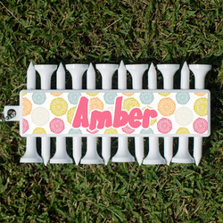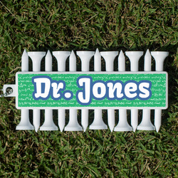 With 12 tees on a lightweight, portable key chain, it almost ensures a great 18 holes. Our tees are made of white plastic and are a little over 2". Design the front and the back of the golf tee holder. Pick from over a hundred designs, colors, and personalization styles! The set even comes with three removable ball markers as well!