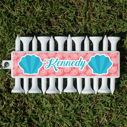 With 12 tees on a lightweight, portable key chain, it almost ensures a great 18 holes. Our tees are made of white plastic and are a little over 2". Design the front and the back of the golf tee holder. Pick from over a hundred designs, colors, and personalization styles! The set even comes with three removable ball markers as well!