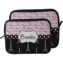 These laptop covers are built from a water-resistant, cushioned neoprene. We display your personalized design on the front of this computer sleeve, while the other sides are simply the black color of the neoprene fabric. A zipper lines the top half of this case, for direct access to your device. For added protection, the interior of this neoprene laptop sleeve is lined with a padded, minky-like material.