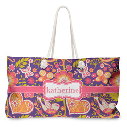 These weekender totes can be customized front and back. The totes are full all over print - so the choice of how background are endless - from beautiful floral or leaf patterns to geometrics or some classic Van Gogh artwork - the possibilities are endless. The totes can also be decorated with photos and logos.