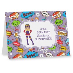 Our custom folded note cards are printed on premium 100lb. card stock and comes with white envelopes. The note card measure 5.5 by 4.25 inches and are blank on the inside for your handwritten message.