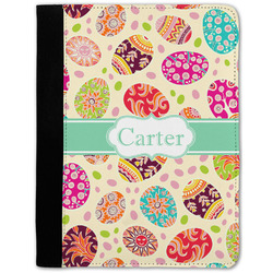 These personalized padfolios are made from a black, polyester microfiber and features a standard, 50-page notepad. However, these black padfolios can accommodate a pad with up to 100 pages. This model also features a slot pocket for any loose sheets of paper, small pockets for business cards, and an elastic band to secure a pen. We print your personalization across the front of this notepad portfolio in bright, vibrant color. These padfolios come in 2 sizes, Medium - approximately 10.25" x 8" for 5" x 8" paper and Large - approximately 12.5" x 8.5" for 8.5" x 11" paper.