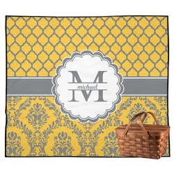 This picnic blanket is perfect for hanging out with your friends at the park or anywhere outside. The top of the blanket is made of a super soft microfiber fleece. The bottom of the blanket is made of a black material similar to a rain jacket and is water repellent as well. This will keep any wet spots on the ground from soaking through your picnic blanket. No one likes a wet blanket. The blanket measures at approximately 50" x 59" and has a nicely finished ribbon edge.