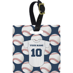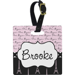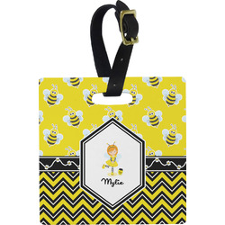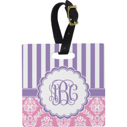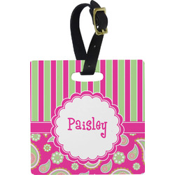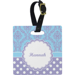 These personalized bag tags are sold in a variety of shapes, so that you may find the product that meets your vision exactly. We sell a round luggage tag, which measures at approximately 4" x 4". Our square luggage tag is about 3.5" x 3.5", while our rectangular version is 2.75" x 4 ".