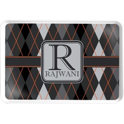 Made from a heavy melamine, these decorative trays are break resistant and are BPA free. At 14" x 9.25", these serving dishes are spacious enough to accommodate several drinks, bowls, or more. The tray features ridges underneath that allow for a sturdy stance upon any table or counter-top. We display your customization at the bottom of the tray's interior, while the remaining sides of the tray are a chic white.