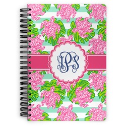 This spiral journal is available in two sizes. The first size is more suitable for a tote or purse and measures at 7" x 5". The second option is a bit larger, at 10" x 7", and is a better fit for a briefcase or backpack.