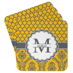 These coasters are perfectly sized for just about any drink being a 4"in square. The paper construction is a thick heavyweight 80 point pulpboard perfect for absorbing the condensation on the outside of your glass.