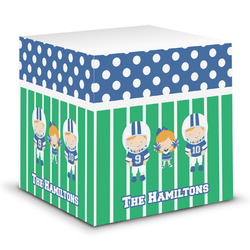 This note cube features 700 sheets of matte, white paper. Each sheet measures at 3.5 by 3.5 inches and has an adhesive strip at its top. Your personalized design is displayed on all four edges of the sticky pad.