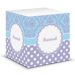 This note cube features 700 sheets of matte, white paper. Each sheet measures at 3.5 by 3.5 inches and has an adhesive strip at its top. Your personalized design is displayed on all four edges of the sticky pad.