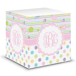 This note cube features 700 sheets of matte, white paper. Each sheet measures at 3.5 by 3.5 inches and has an adhesive strip at its top. Your personalized design is displayed on all four edges of the sticky pad.