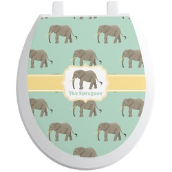 We sell these toilet lid decals in two different shapes to accommodate a wider range of toilet seat shapes. The first shape is our standard, round size, which measures at 13.5 by 12 inches. Our second option is an elongated shape, suited for long toilet seat covers. It measures 15 by 12 inches.