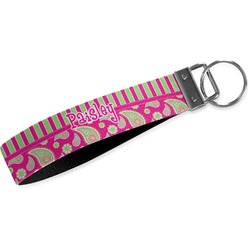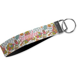 Custom Floral Pattern Wristlet Webbing Keychain Fob