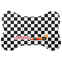 Checkers & Racecars Bone Shaped Dog Food Mat (Personalized)