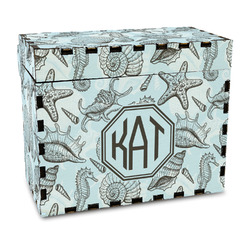 Sea-blue Seashells Wood Recipe Box - Full Color Print (Personalized)