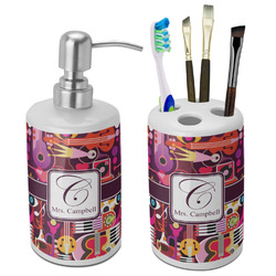 Abstract Music Ceramic Bathroom Accessories Set (Personalized)