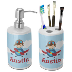 Airplane & Pilot Ceramic Bathroom Accessories Set (Personalized)