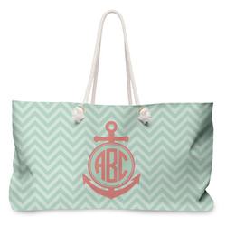 Chevron & Anchor Large Tote Bag with Rope Handles (Personalized)