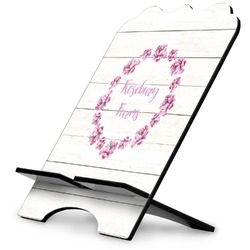 The main design has a background of weathered wooden planks. A beautiful light pink flower frame is used as the focal point of this design. The pink color of the frame and the personalization inside is the perfect contrast to the light colored wood.