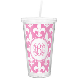 Fleur De Lis Double Wall Tumbler with Straw (Personalized)