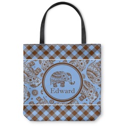 This design with gingham and baby elephants is elegant and versatile. We chose to use baby blue and brown for our colors, however the design is fully recolor-able; so you can change the both the colors to any color combination that you like.