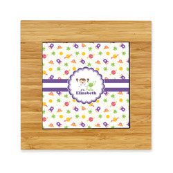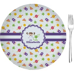 Girls Space Themed 9.5" Glass Square Lunch / Dinner Plate- Single or Set of 4 (Personalized)