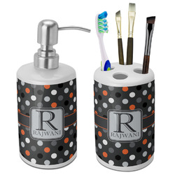 Gray Dots Ceramic Bathroom Accessories Set (Personalized)