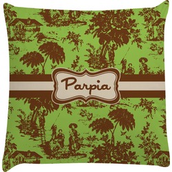 Green & Brown Toile Faux-Linen Throw Pillow (Personalized)