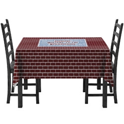 The design has two patterns with one surrounding the other in a square format. The inner pattern is a beautiful light-blue with white illustrations of houses and apartments. The outer design is a warm red brick pattern. The combination of these two patterns makes for a very friendly feeling design. The personalization goes directly in the middle of the inner design. The coordinating pattern has a fun colored graphic of a block of apartments and a place for text underneath.