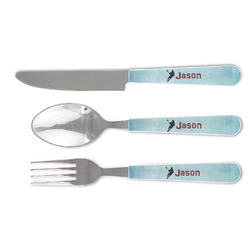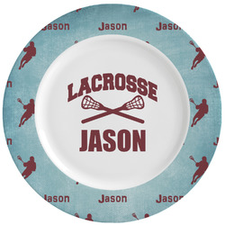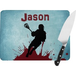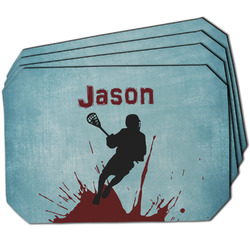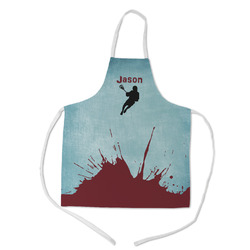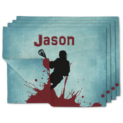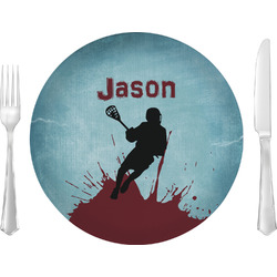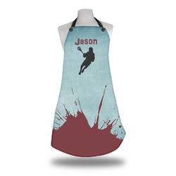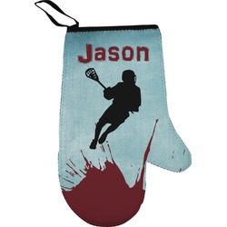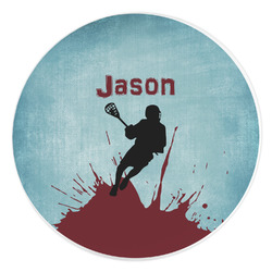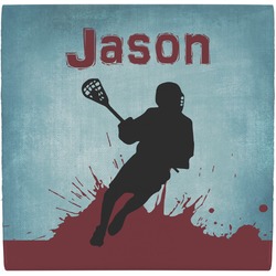 This design has a cool blue background with a literal splash of maroon. Your personalization goes above the lacrosse player silhouette. The movement in this design gives the perfect feeling for a sports design.