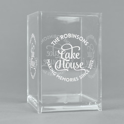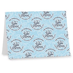This Lake House Design is serene and calm. We create a "personalized" pattern for this design. The pattern consists of serene blue waves and a round badge that has the words Lake House in the middle. The top text & bottom texts can be customized; we chose to use the family name for the top and instead of using established in 2012, we chose to use the words "Making Memories Since 2012".