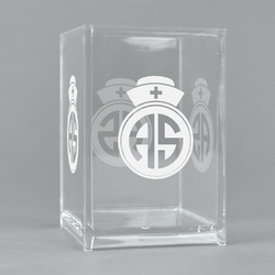 This design features a fun pattern with illustrations of different nursing tools, such as a stethescope, band aid, medicine, and more! The background is a light blue, while the ribbon is a coral color. There is a frame in the middle to put your personalization.