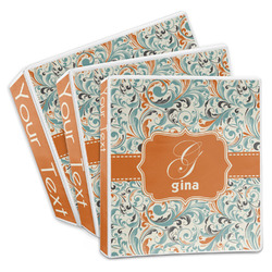 Orange & Blue Leafy Swirls Sandstone Car Coasters (Personalized)