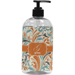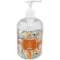 Orange & Blue Leafy Swirls Acrylic Soap & Lotion Bottle (Personalized)