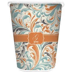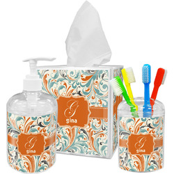Orange & Blue Leafy Swirls Ceramic Bathroom Accessories Set (Personalized)
